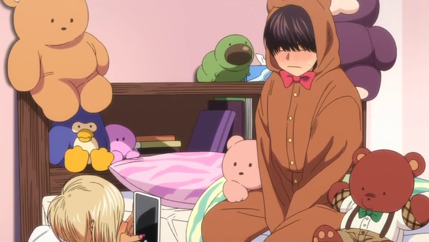 这次也一样。善浑身被羞耻感包围,熊头下面的他红着脸,对面的莉奈则在一旁不断的拍照欣赏。